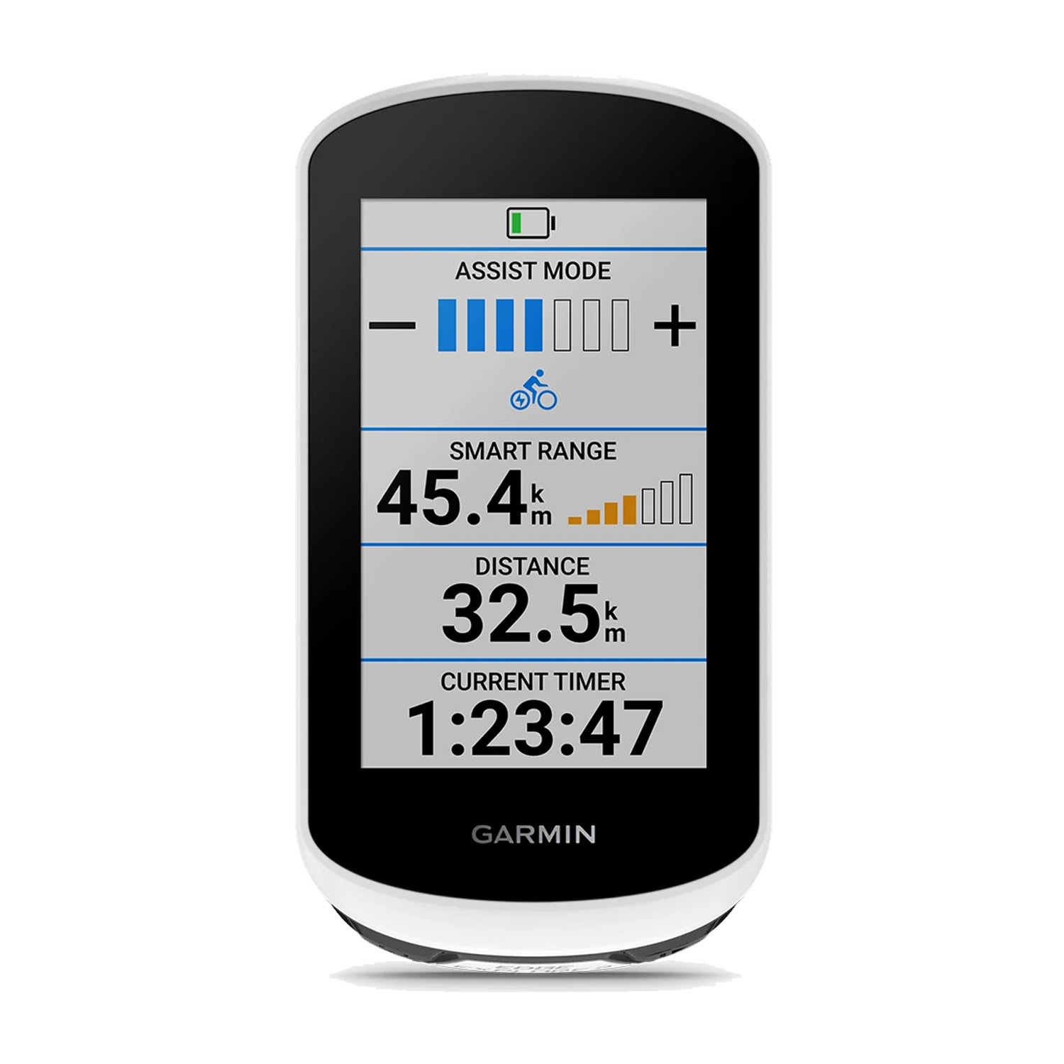 Garmin is overgestapt op de wijd gebruikte USB-C poort en de powerbundel heeft een metalen mount op de achterzijde. Deze mount is compatible met de Garmin powerbank en kan ook gekoppeld worden aan de accu van een elektrische fiets waardoor je je nooit druk hoeft te maken over de batterij van de fietscomputer. Een extra Bosch of Shimano kabel is nodig om op te laden via de accu. De Edge Explore 2 laat de status van de accu zijn als de e-bike ANT+ compatibel is. De Edge Explore 2 kort de route dan in als de accu bijna leeg is zodat je niet zonder lege e-bike accu komt te staan.