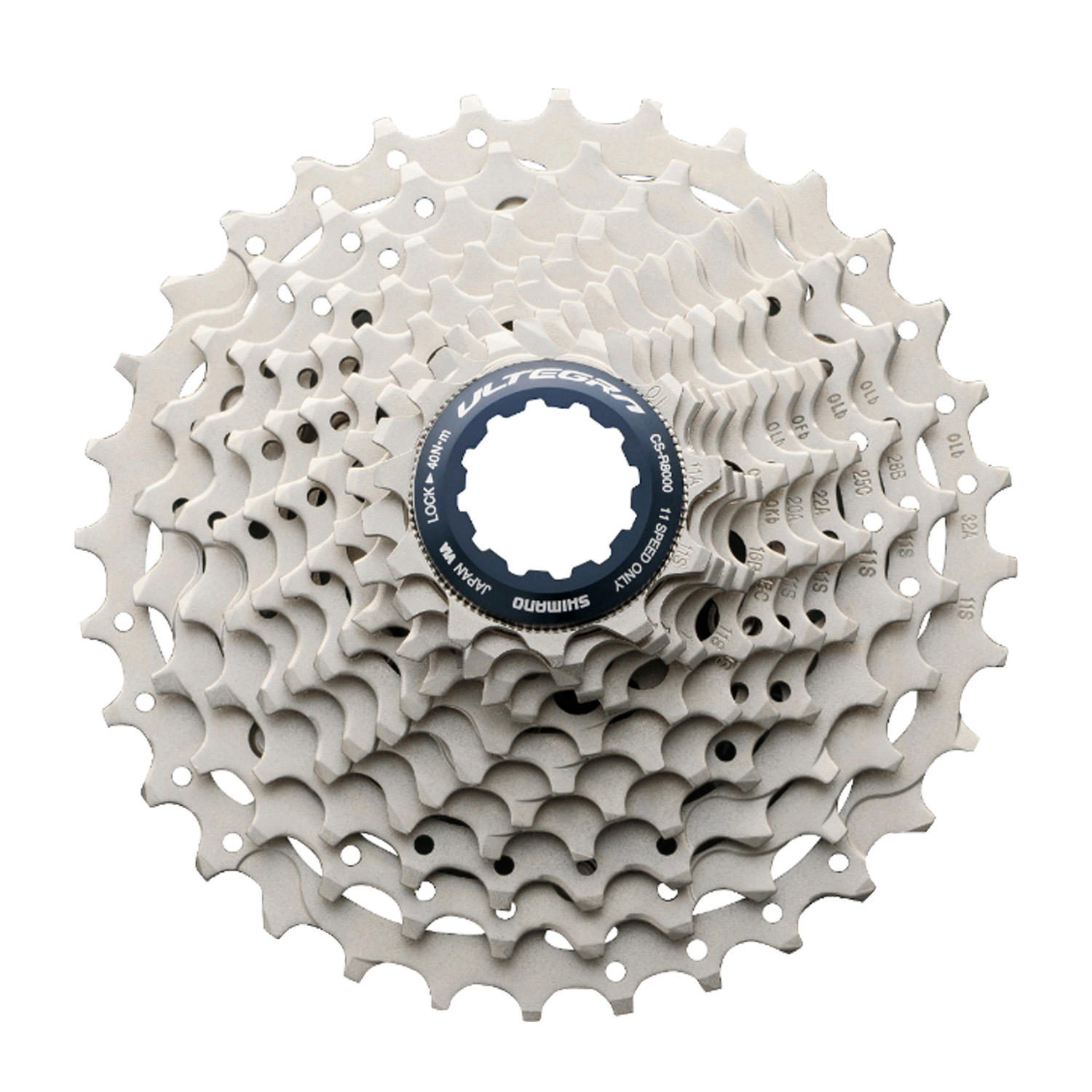 De cassette is te verkrijgen in verschillende cassettematen. Te verkrijgen in de combinaties 11-25,11-28, 11-30, 12-25, 11-32, 14-28. De Ultegra 11-34 cassette heet HG800 in plaats van R8000 maar dit is dezelfde kwaliteit cassette, als je deze vertanding besteld staat er HG800 op de verpakking. De Ultegra 11-34 HG800 cassette moet op een 11-speed body met de bijgeleverde spacer achter de cassette gemonteerd worden, de HG800 cassette is namelijk ook geschikt om op een 10-speed body monteren en deze te monteren op MTB 's met 2x11 afmontage.