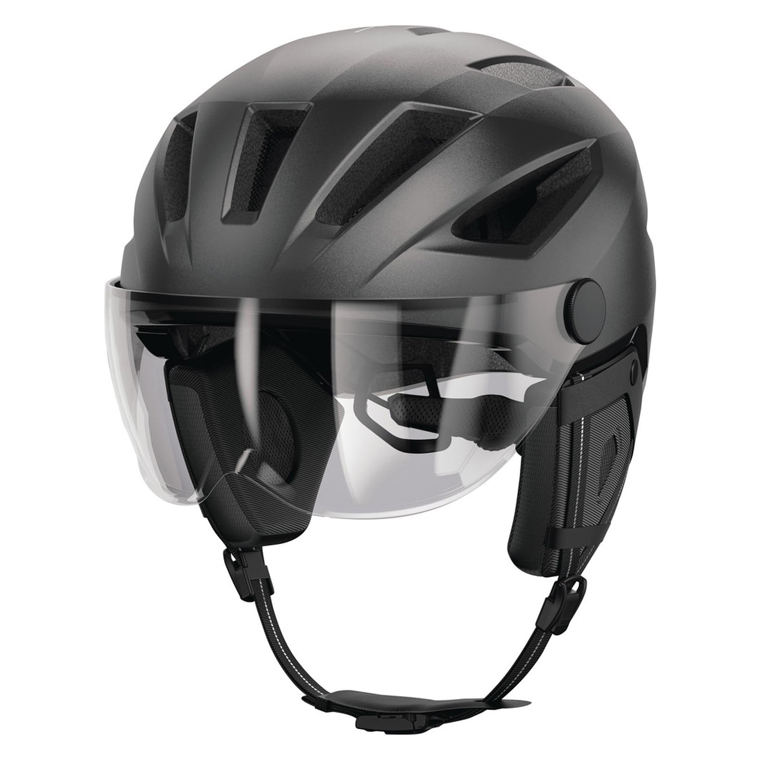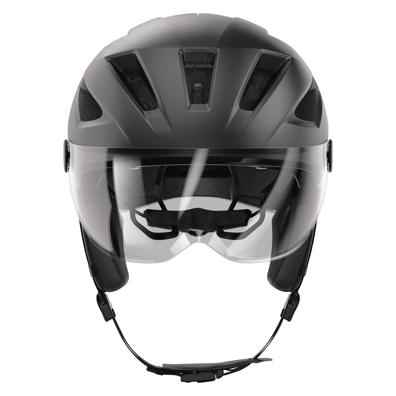 Met een snelheid van 45 km/u kan het erg pijnlijk zijn om iets in de ogen te krijgen. daarom wordt de helm geleverd met een afneembaar vizier. Dit voorkomt tranende ogen en daarnaast beschermt het de ogen tegen vuil en insecten die tijdens het fietsen in het gezicht terecht kunnen komen. Het voordeel van het vizier is ook dat je gewoon een zonnebril of gewone bril er onder kunt dragen.