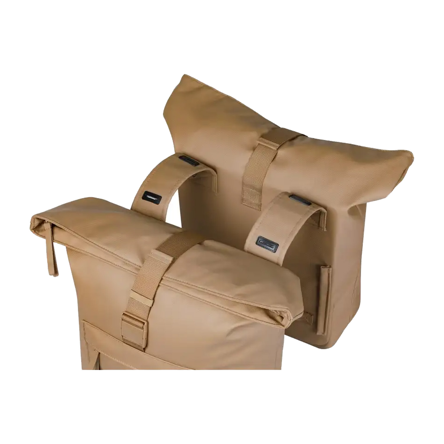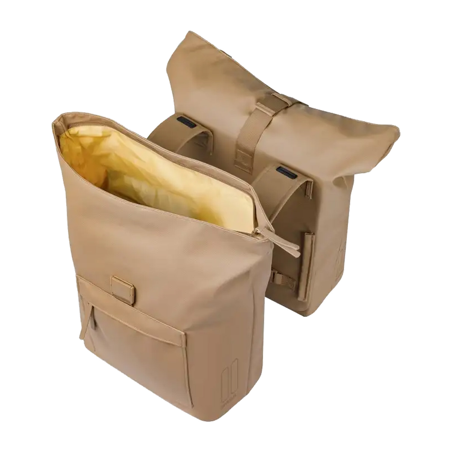 Met een totale inhoud van 41 liter biedt de Basil Brooklyn dubbele fietstas meer dan voldoende opbergruimte voor intensief dagelijks gebruik. De tas is waterdicht uitgevoerd en voorzien van een waterafstotende vouwsluiting met gesp, zodat je spullen goed beschermd blijven tegen regen en opspattend water. Aan de voorzijde bevinden zich praktische buitenvakken voor items die je snel bij de hand wilt hebben.