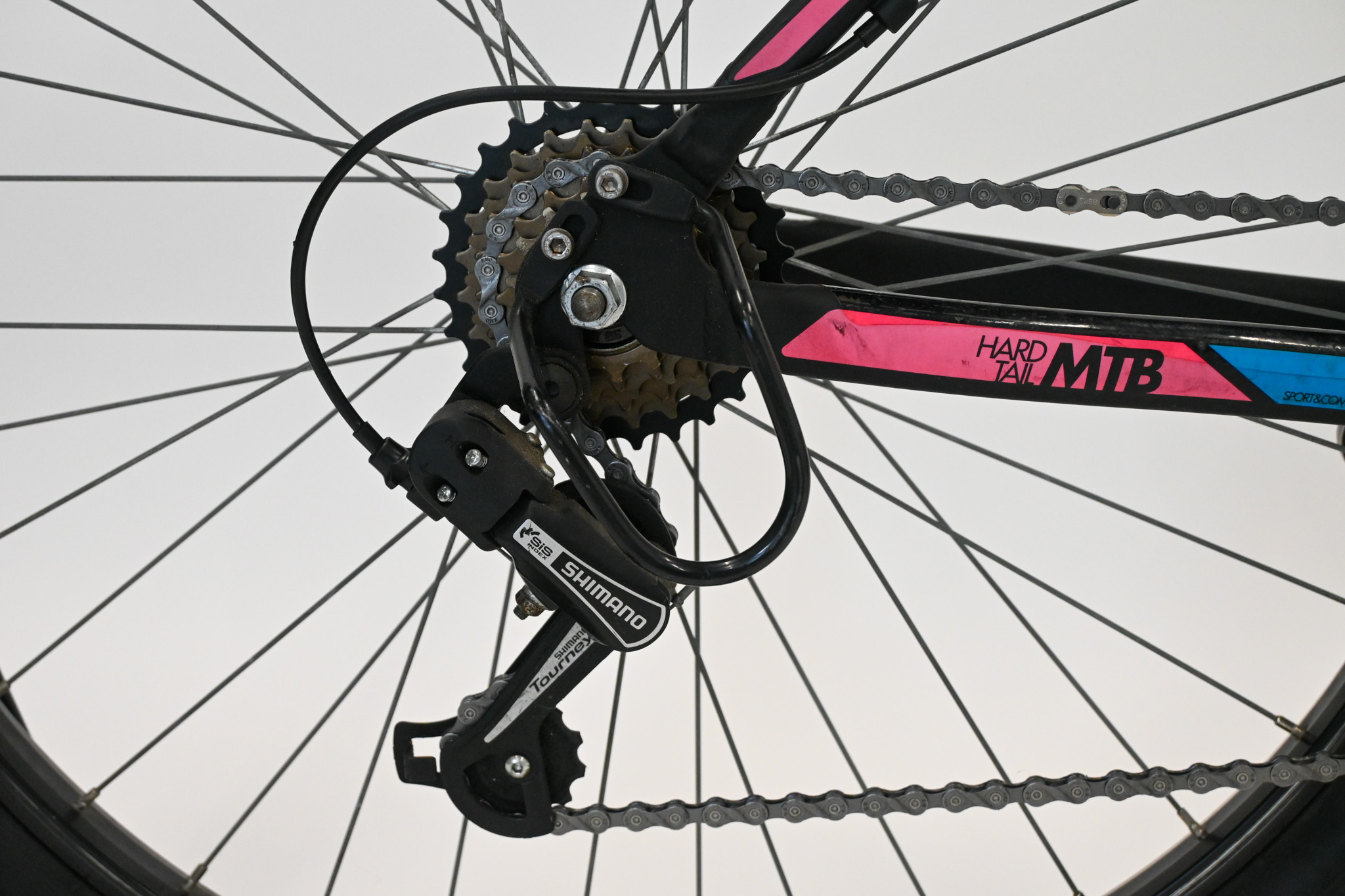 Robuuste en stevige mountainbike. Extra grote framemaat voor lange personen. Nieuwe ketting en tandwielen. Ideale fiets voor recreatieve doeleinden. LET OP: deze fiets is alleen verkrijgbaar in onze winkel!