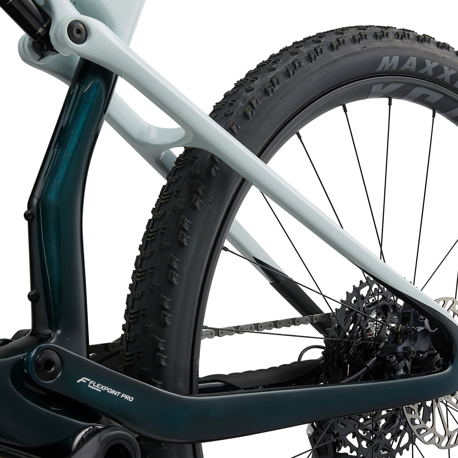- Advanced SL composite frame met 120 mm FlexPoint Pro-achtervering en Flip Chip-geometrie.