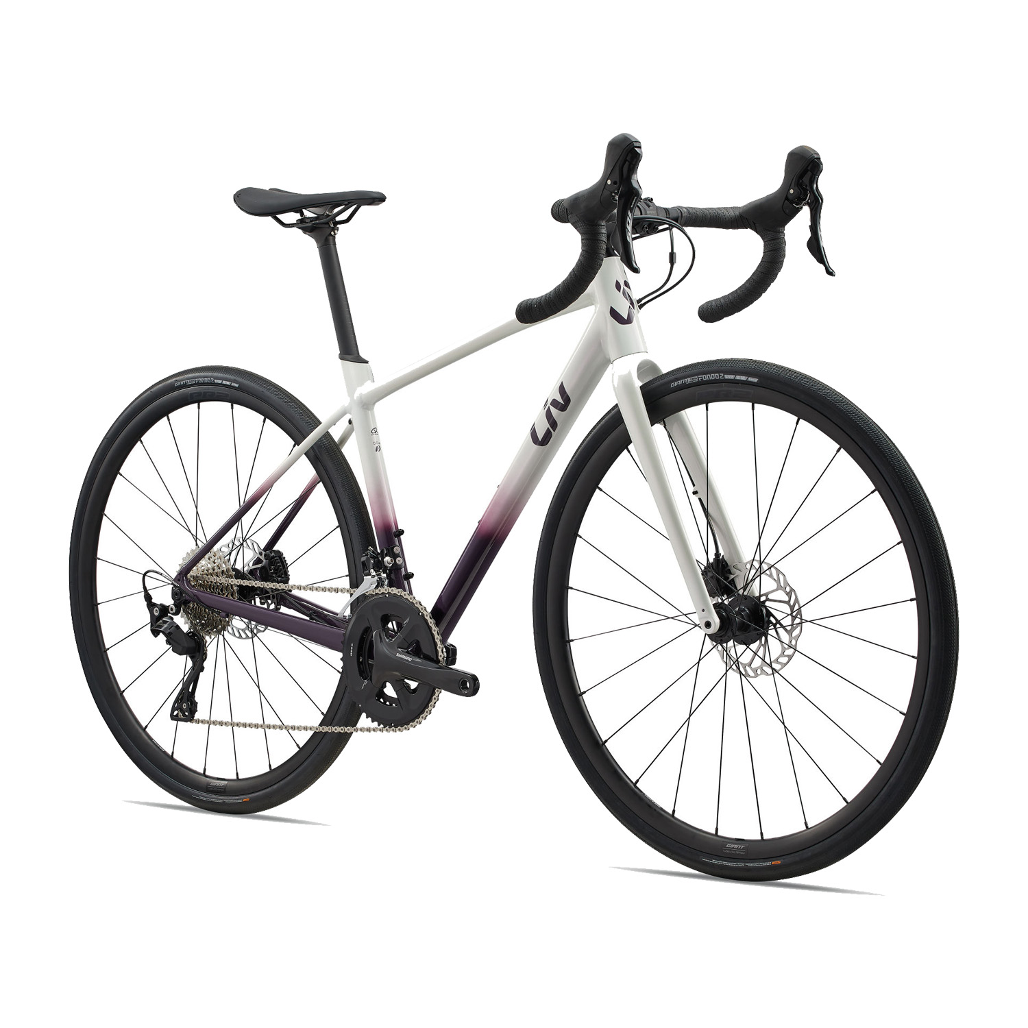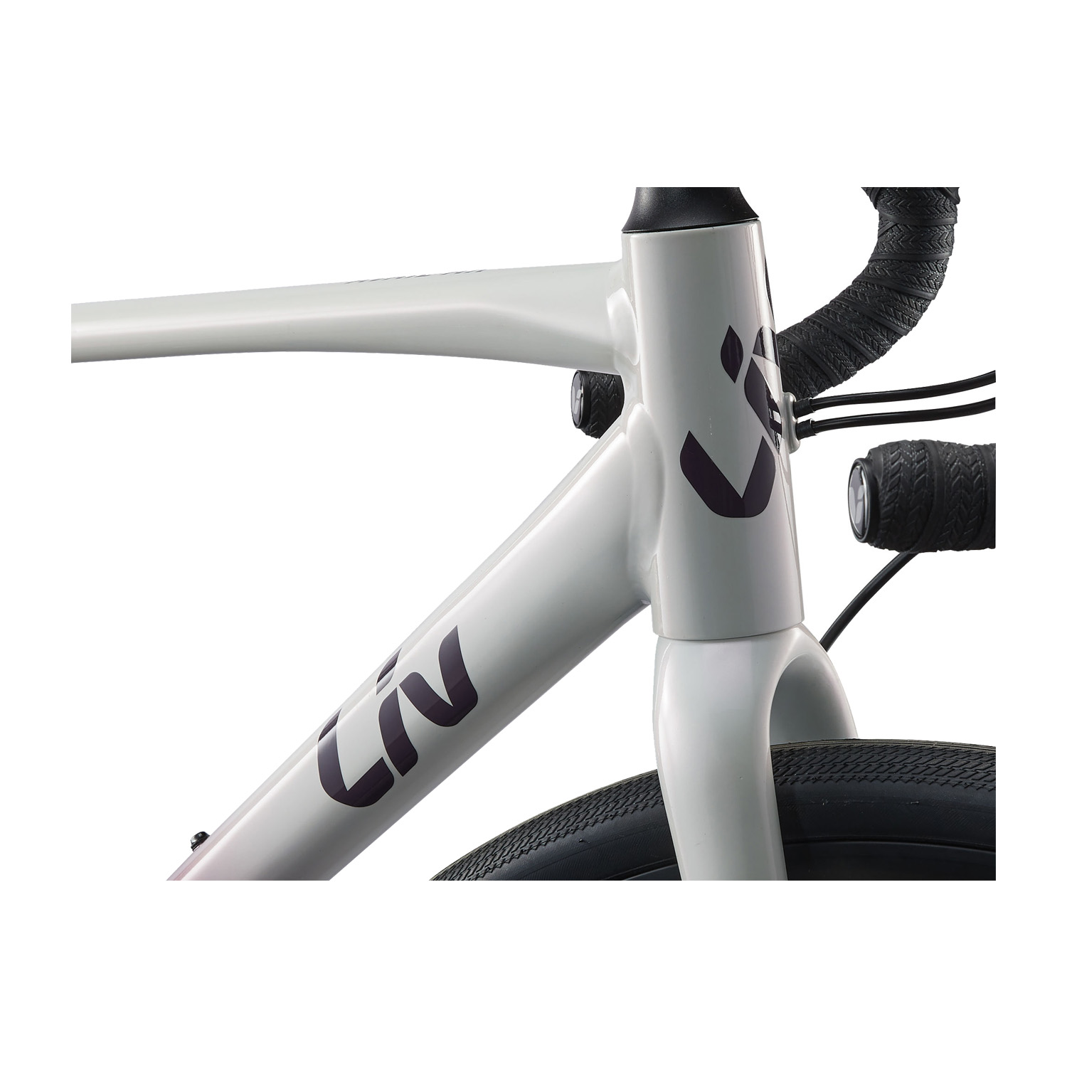 De nieuwe Liv Avail AR 1 wordt standaard geleverd in de kleurencombinatie fancy white met tyrian purple.