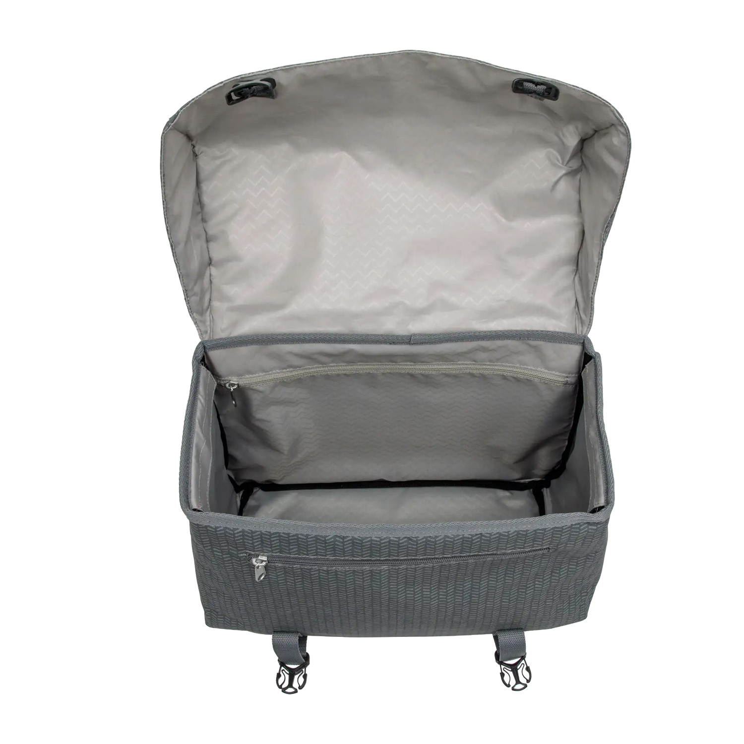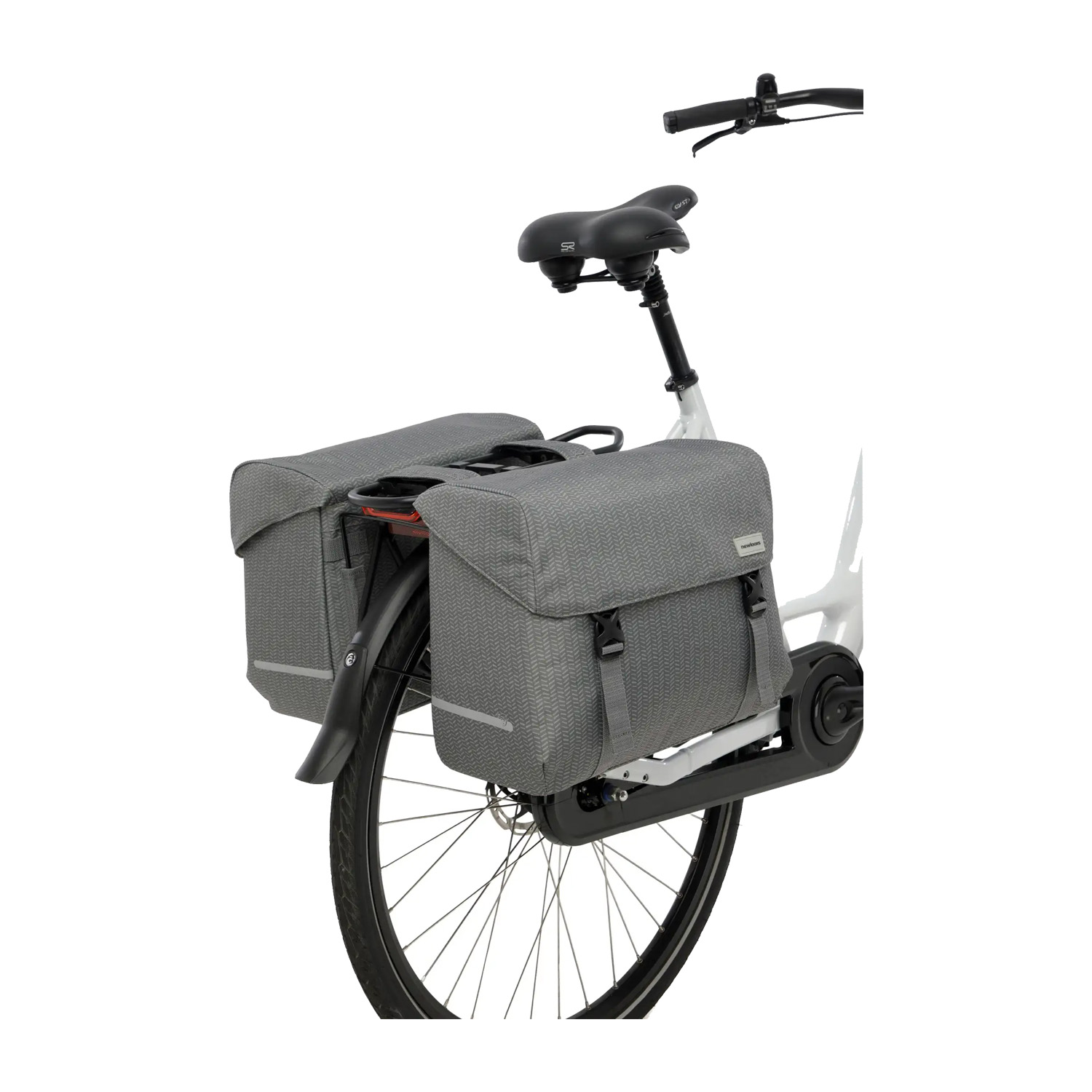 De dubbele fietstas wordt bevestigd met riempjes en is daardoor geschikt voor vrijwel alle fietsen, inclusief elektrische fietsen. De brug tussen de twee tassen is 18 cm breed. Met een extra klittenbandriempje zet je de tas stevig vast aan de zijkant van de bagagedrager, zodat deze stabiel blijft zitten tijdens het fietsen.