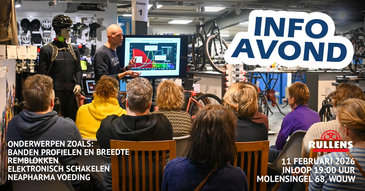 Op woensdag 11 februari 2026 organiseert Rullens Fietsen een eigen Infoavond. Iedere sportieve fietser is van harte welkom in onze winkel voor een gezellige en inspirerende avond.
