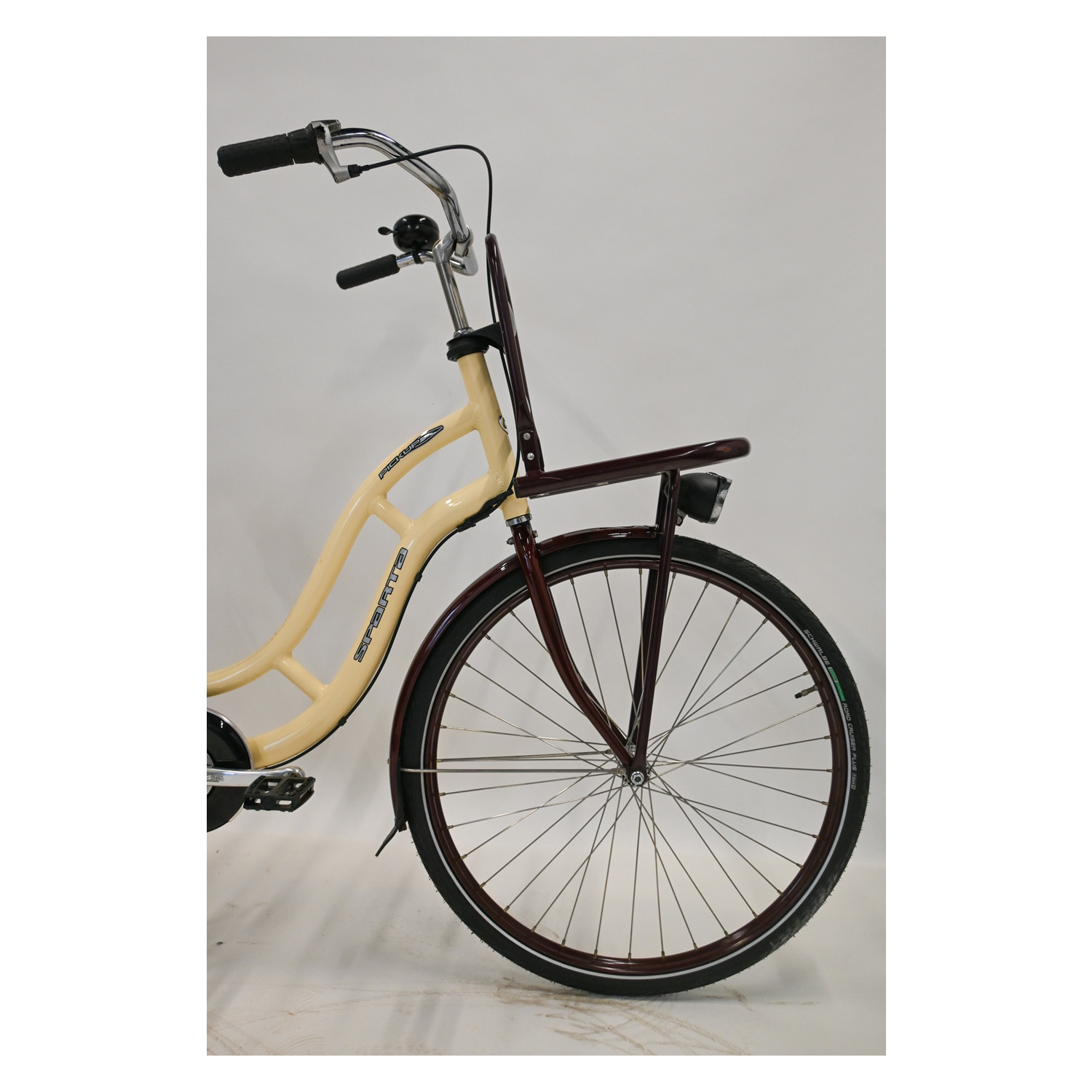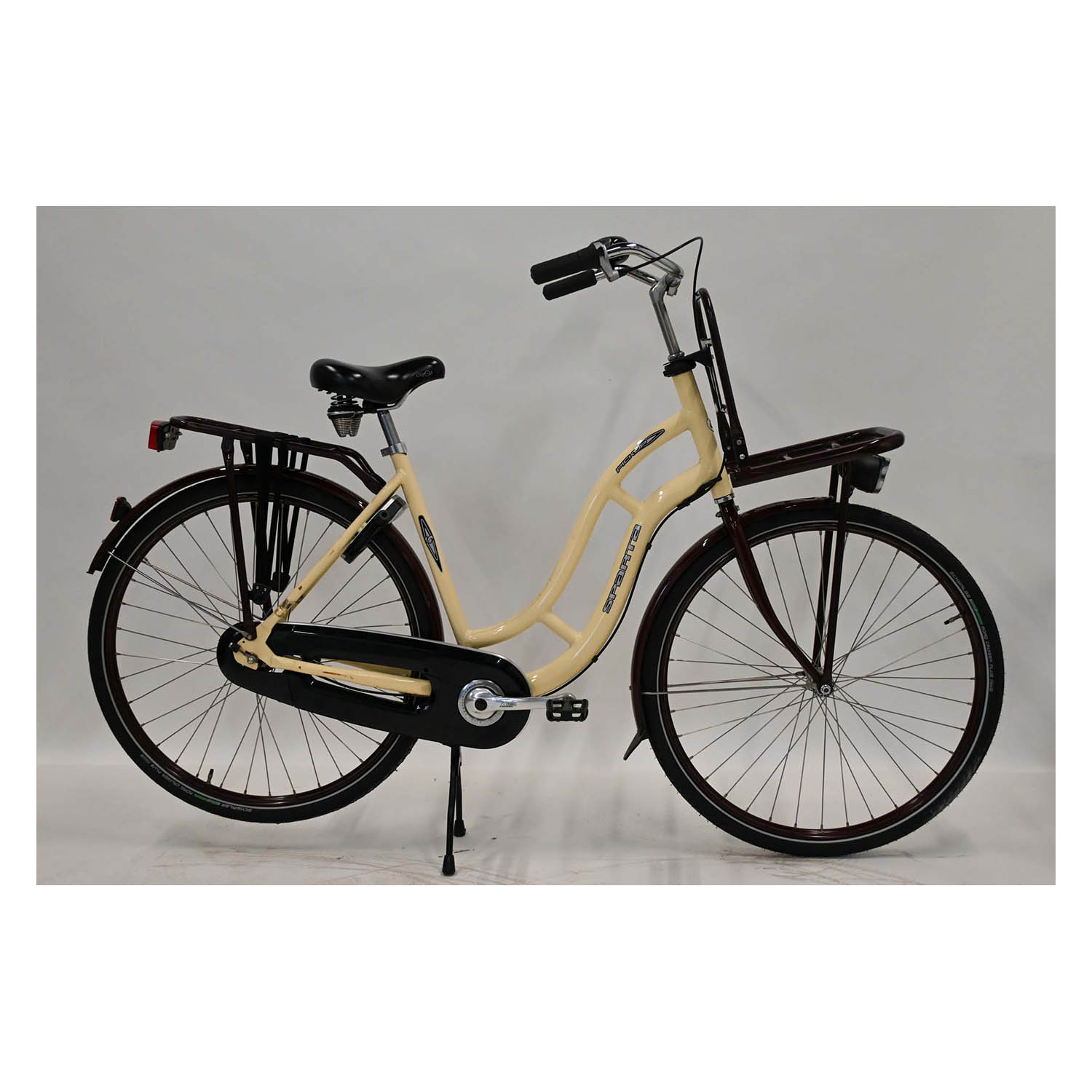 De Sparta Pick-Up wordt gekenmerkt door een dubbele standaard, bagagedrager voor en kleur. Deze stadsfiets beschikt over een terugtraprem.