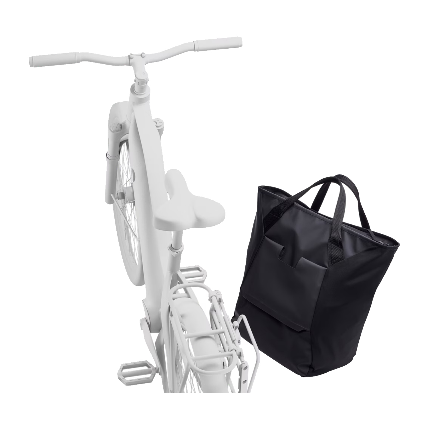Dankzij de ergonomische tote-handvatten draag je de tas comfortabel in de hand wanneer je van de fiets af bent. Het ontwerp zonder omvangrijke hardware maakt de tas licht en prettig in gebruik, zowel op de fiets als in de stad.
